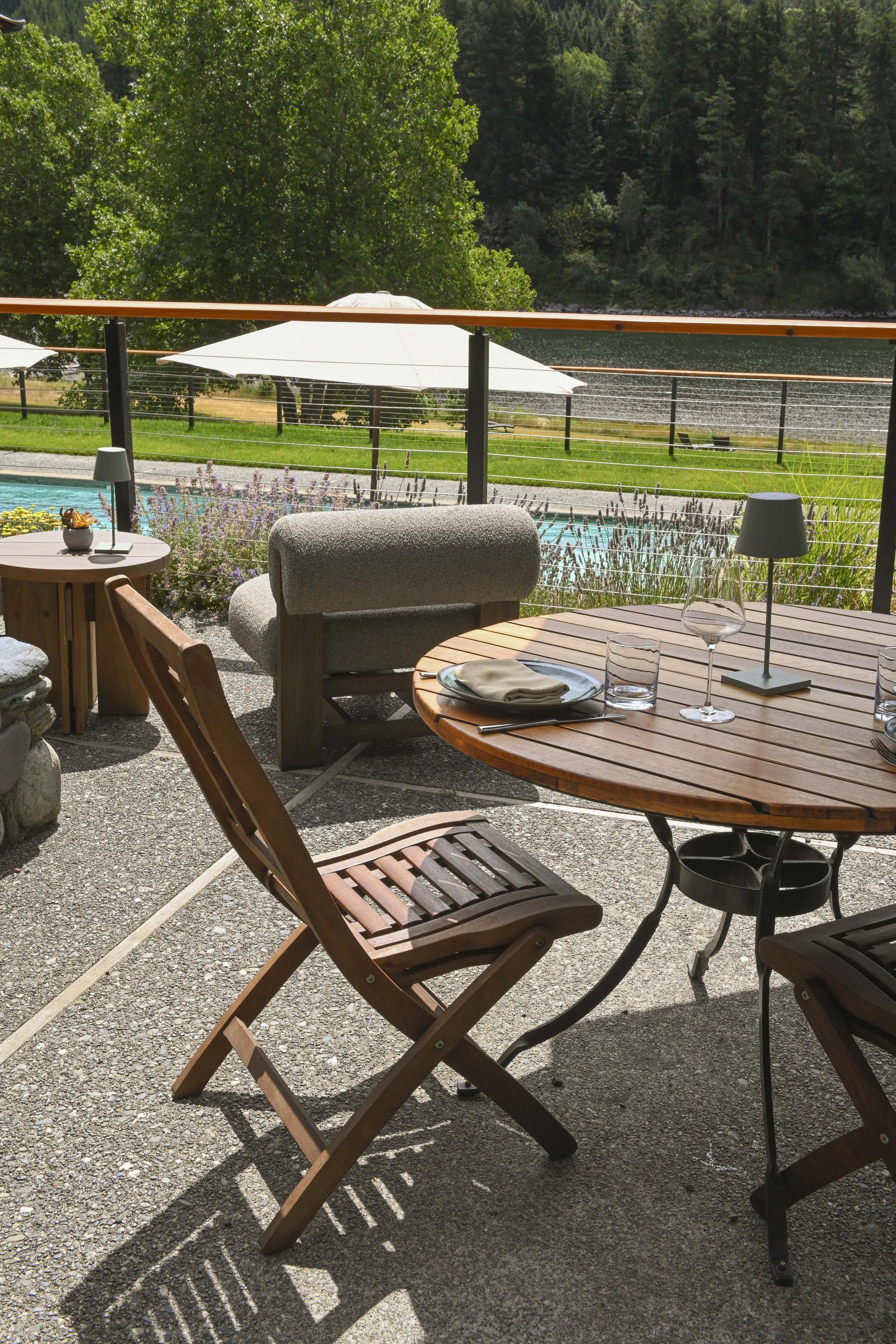 Sunday settles into the heart of the weekend—warm, open, and quietly social. Breakfast comes later for those who lingered last night, easing into a day that asks nothing of you. Take a brisk swim in the river, sip from our cellar, or spend an afternoon by the pool with a book you can’t put down. By afternoon, the lawn comes to life—wine in hand, something to snack on, conversation moving easily from one group to the next. Evening gathers around a shared table, a meal that feels like summer arriving, passed between friends, old and new, as the setting sun yields the day to glowing candles.